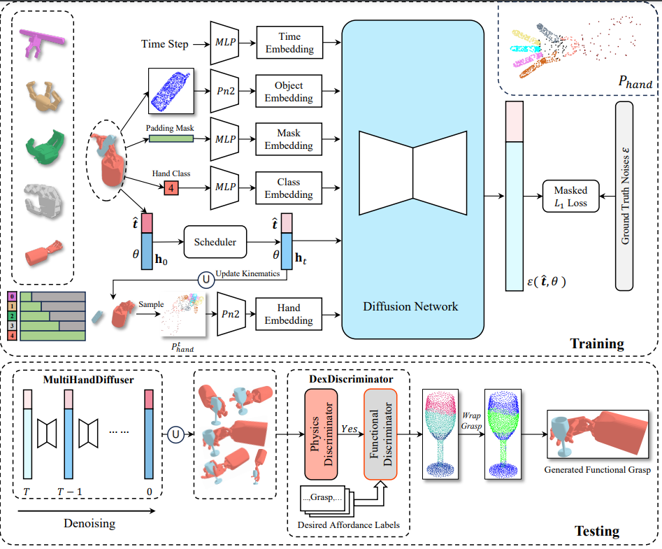 The versatility and adaptability of human grasping catalyze advancing dexterous robotic manipulation. While significant strides have been made in dexterous grasp generation, current research endeavors pivot towards optimizing object manipulation while ensuring functional integrity, emphasizing the synthesis of functional grasps following desired affordance instructions. This paper addresses the challenge of synthesizing functional grasps tailored to diverse dexterous robotic hands by proposing DexGrasp-Diffusion, an end-to-end modularized diffusion-based pipeline. DexGrasp-Diffusion integrates MultiHandDiffuser, a novel unified data-driven diffusion model for multi-dexterous hands grasp estimation, with DexDiscriminator, which employs a Physics Discriminator and a Functional Discriminator with open-vocabulary setting to filter physically plausible functional grasps based on object affordances. The experimental evaluation conducted on the MultiDex dataset provides substantiating evidence supporting the superior performance of MultiHandDiffuser over the baseline model in terms of success rate, grasp diversity, and collision depth. Moreover, we demonstrate the capacity of DexGrasp-Diffusion to reliably generate functional grasps for household objects aligned with specific affordance instructions.